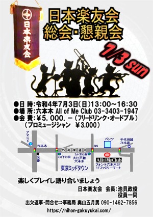 コロナ感染のため2020年、2021年は懇親会が中止となりました。2022年はコロナの隙を狙って7月3日に六本木のAll
