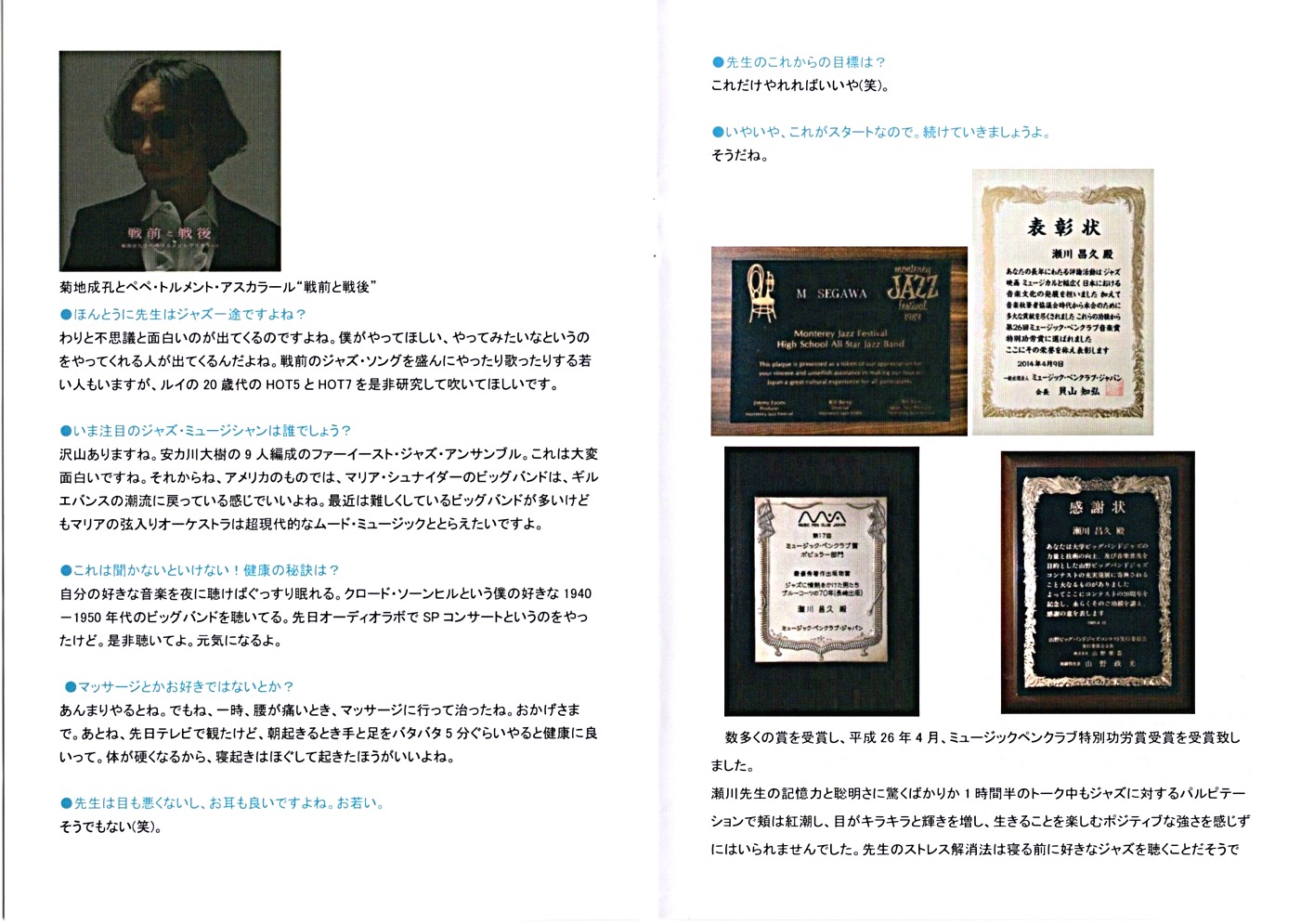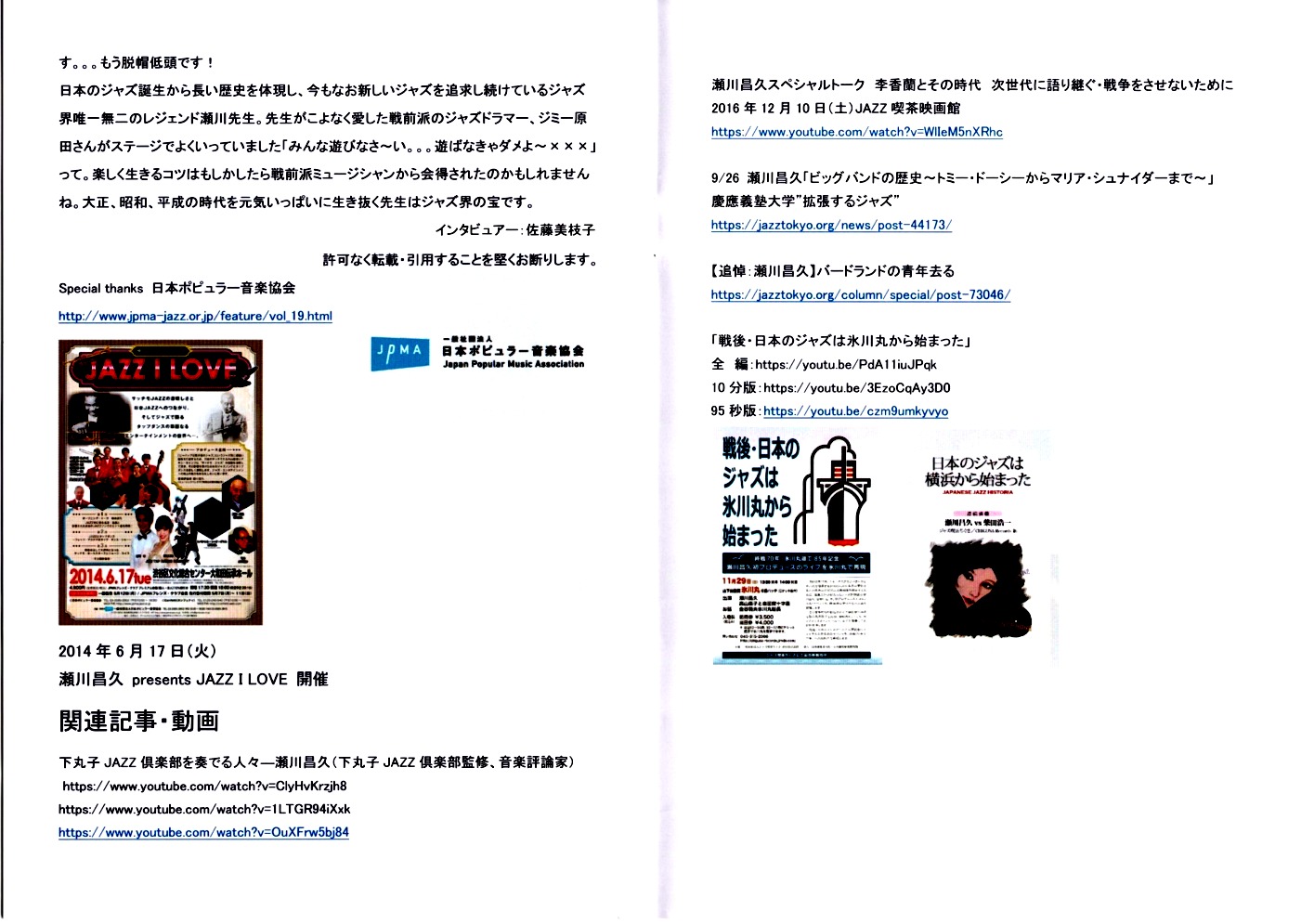 | 訃報 瀬川昌久(副会長) 当会の副会長、瀬川昌久氏が2021年12月29日に逝去されました。97歳でした。 暮も押し詰まった12月29日のことです。ジャズジャーナリストで可愛い後輩の中川ヨウさんからの知らせです。謹んでご冥福をお祈りいたします。(2021/12/29)